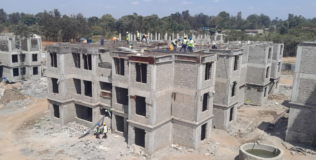 The construction of 220 affordable housing units in the Makenji area of Murang’a County is 45 per cent complete.