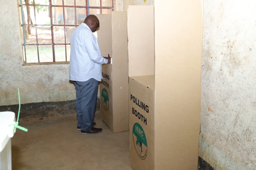 UDA Director of Campaigns and Turkana Governor, Josphat Nanok, cast his ballot at Lodwar handcraft where he expressed confidence in the Independent Electoral Boundaries Commission (IEBC), ability to deliver a