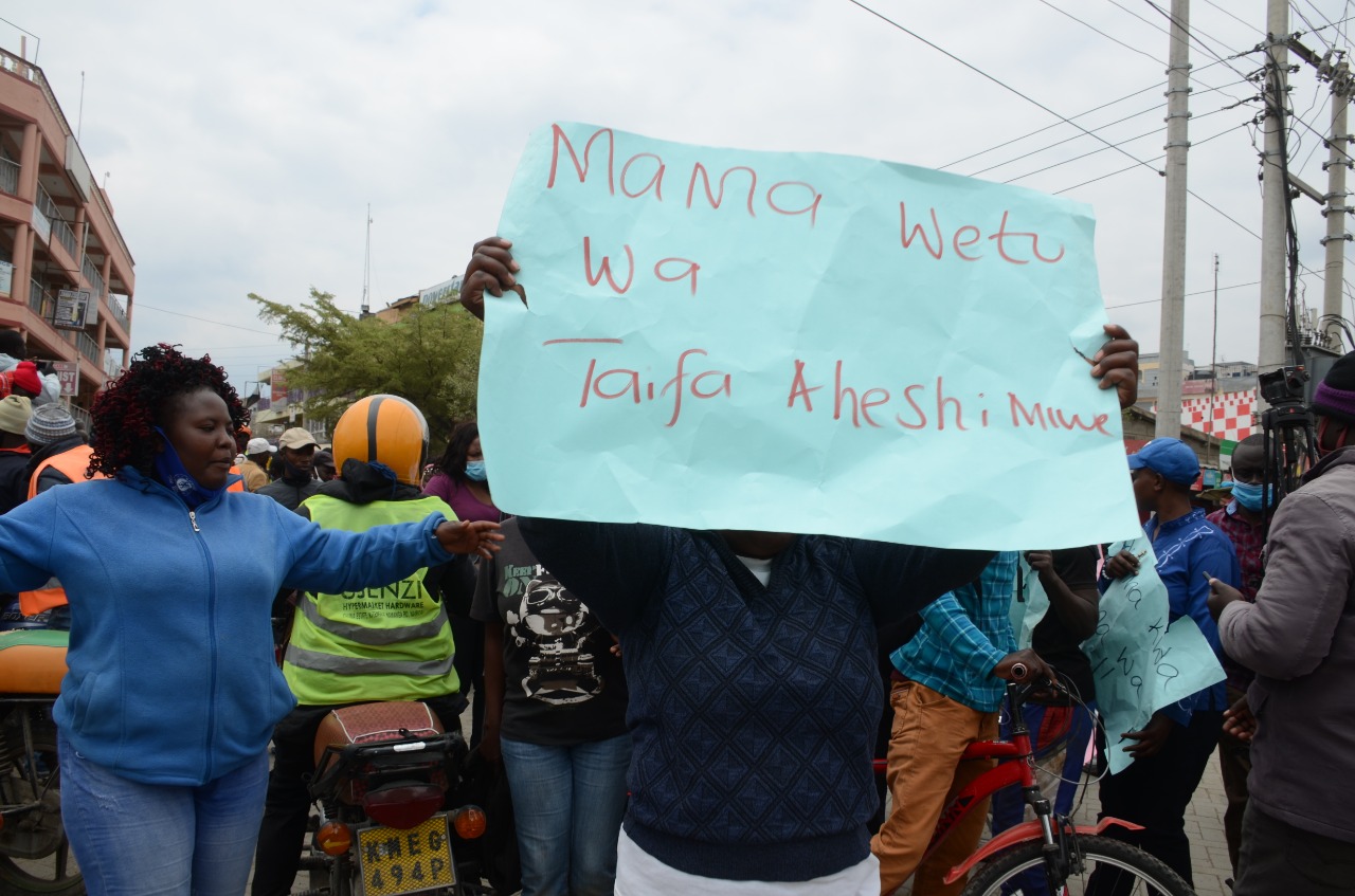 A section of women in Kitengela town on Thursday morning took to the streets to protest against unsavory remarks directed at President Uhuru Kenyatta and the former First Lady Mama Ngina Kenyatta. The