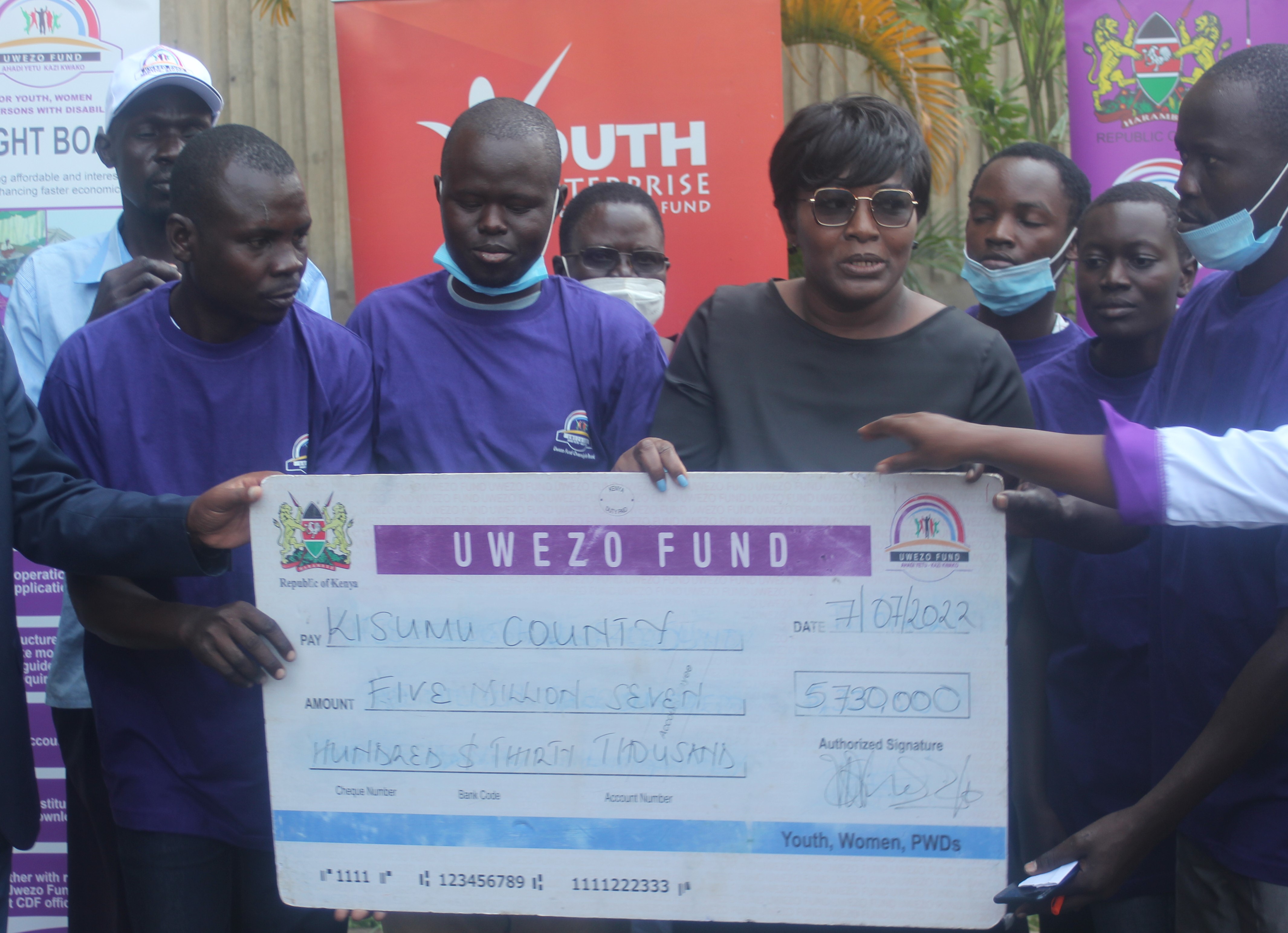 Cheques worth Sh22.73 million from affirmative funds that include Uwezo, Women Enterprise and Youth Enterprise Development fund have been disbursed to various women and youth groups in Kisumu County. Ministry of