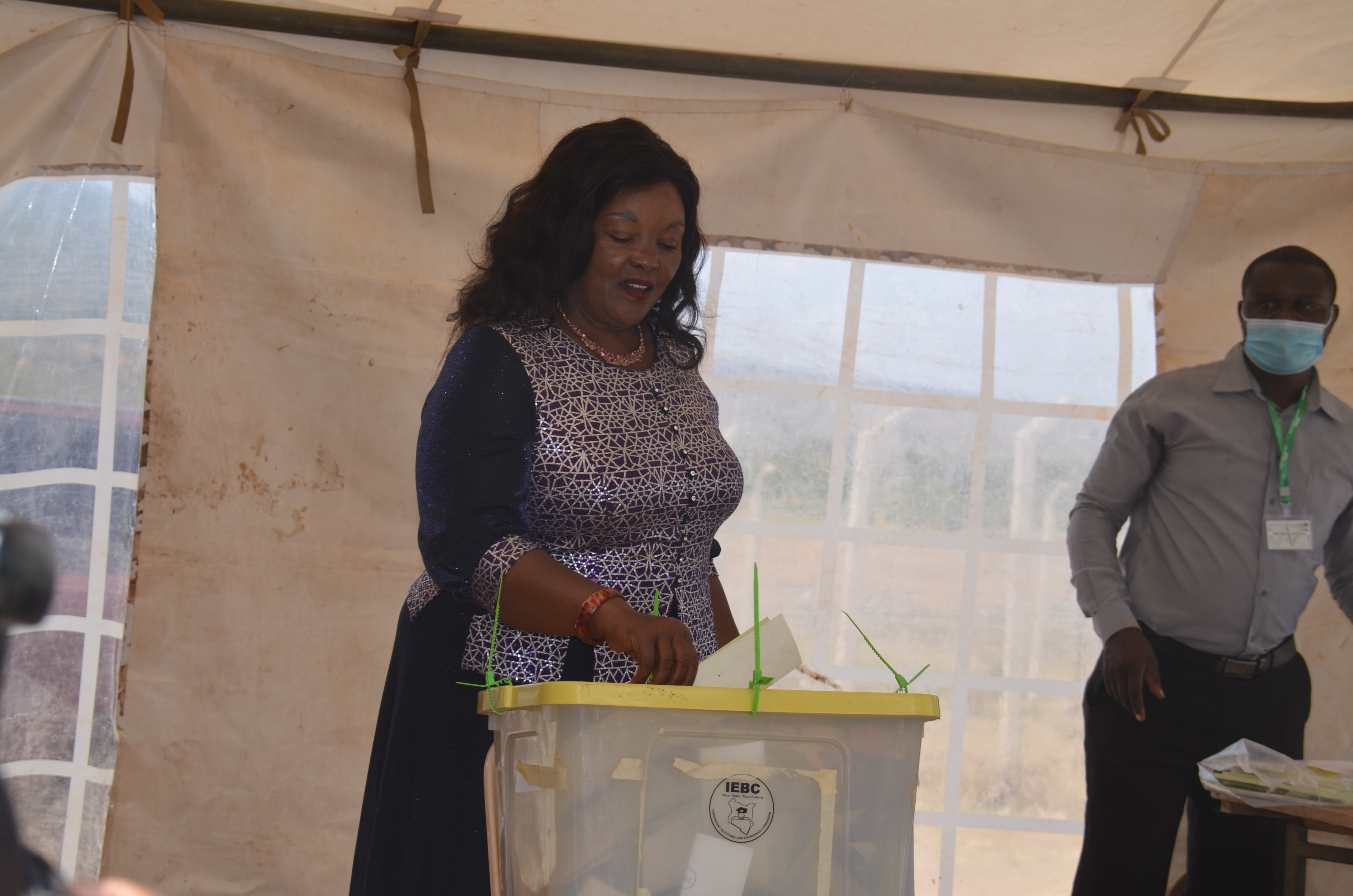 Wiper Party candidate Agnes Kavindu has exuded confiding of clinching the Machakos Senatorial seat moments after casting her vote at the Kathome polling center today. Kavindu who was accompanied by