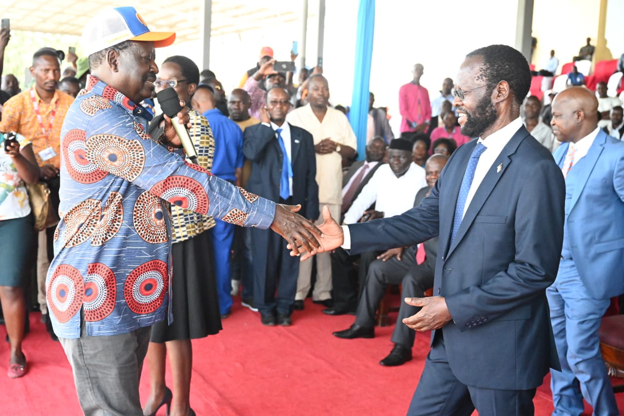 Read onAzimio leader, Raila Odinga congratulates Kisumu Governor Prof. Anyang Nyong'o soon after he was sworn in by Justice William Musyoka at Jomo Kenyatta Stadium today. He arrived just as the function