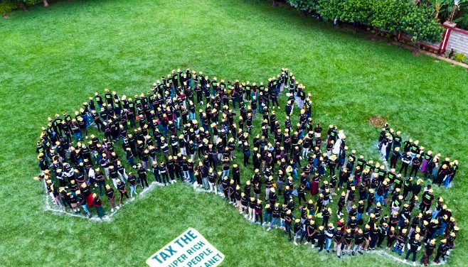 Hundreds of volunteers from Greenpeace Africa formed a giant human banner in the shape of the African continent and displayed a printed message, ‘Tax the Super-rich for People and Planet’, to demand urgent tax reform at UN Tax Convention negotiations.