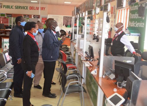 Acting Chief Officer for Cooperatives and Enterprise Development Nixon Cheplong accompanied by Director Enterprise Fund Isaac Lagat and Cooperative Commissioner Roselyne Rae on Thursday hosted a KUSCCO delegation at the county headquarters.
