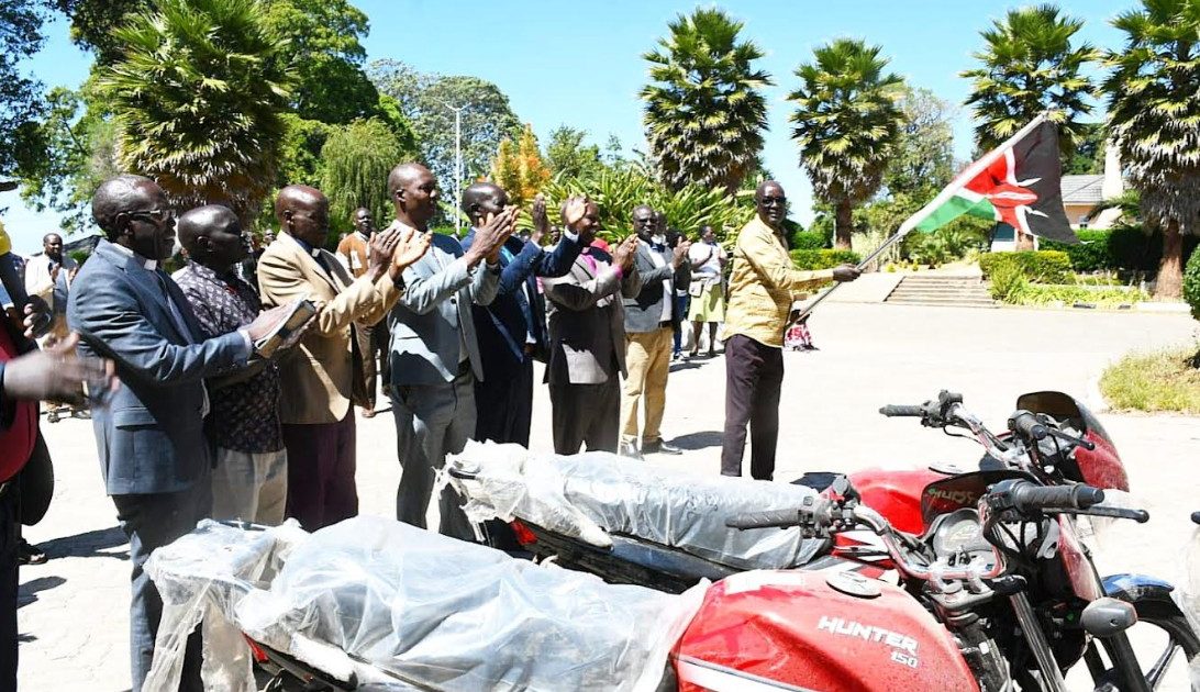 West Pokot Governor Simon Kachapin has flagged off 120 motorbikes to be used by bishops and pastors serving in the border counties of West Pokot, Baringo, Elgeyo Marakwet and Turkana to enhance pastoral work by improving mobility in the vast and rugged regions.