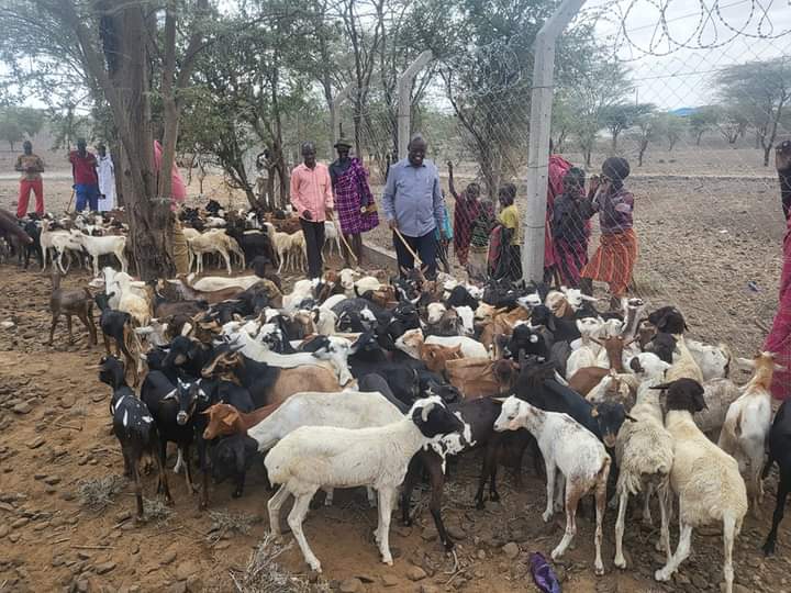 Governor Jeremiah Lomorukai, led a livestock restocking program and distribution of relief food supplies to victims of 2023 stock theft attack and to households affected by drought at Loperotot, in Turkana South Sub County.