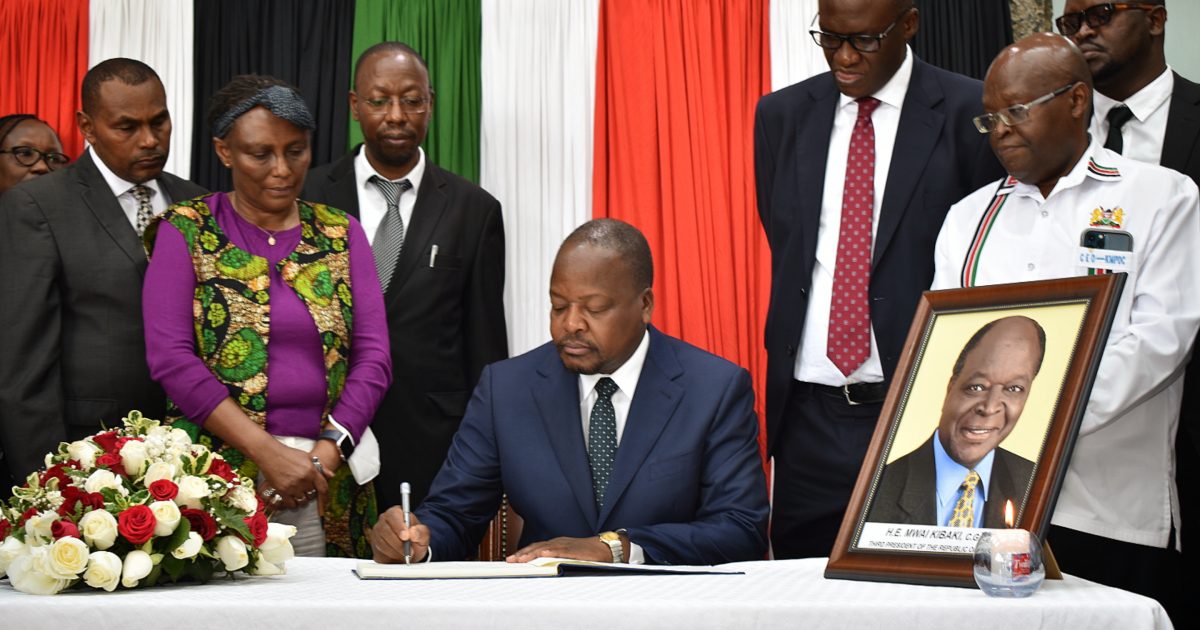 Health Cabinet Secretary (CS) Mutahi Kagwe today led former Health Ministry officials who worked with the late President Emilio Mwai Kibaki when he was the Minister for Health in the signing of the condolence book at Afya House, Nairobi.
