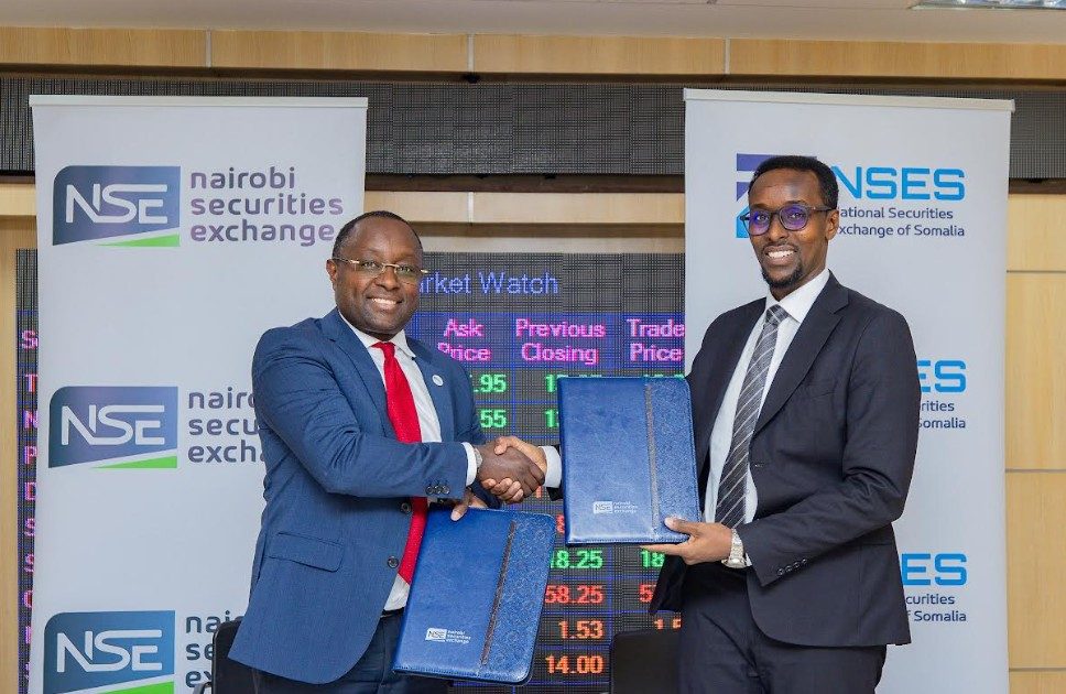The Nairobi Securities Exchange Plc (NSE) and the National Securities Exchange of Somalia (NSES) have today signed a Memorandum of Understanding (MoU) to deepen cooperation in East Africa’s capital-markets ecosystem.
