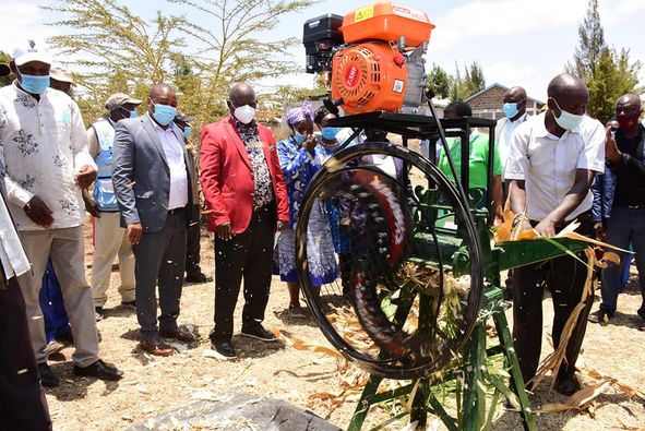 While issuing 14 chaff cutters, 10 forage choppers and three bean threshers to Gathathi-ini Men Self Help Group in Thegu River ward recently courtesy of KCSAP, Governor Mutahi Kahiga said that the machines will help in boosting food production and livestock farming in the area.