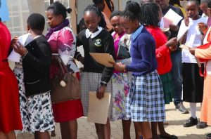 At St. Faustina Kerugoya Girls’ Senior School, learners arrived early in the morning accompanied by their parents and guardians to complete the admission process.