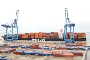The MV Nagoya Express successfully loaded 140 trans-shipped TEUs destined for New York, cargo that had initially been discharged at Lamu by another Hapag-Lloyd vessel, the MV Tolten.