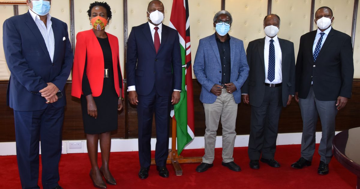 Health Cabinet Secretary Mutahi Kagwe with the newly inaugurated Mathari Mental Health Board members at Afya House on thursday. The board will provide leadership in the establishment of Mathari as a center of excellence.