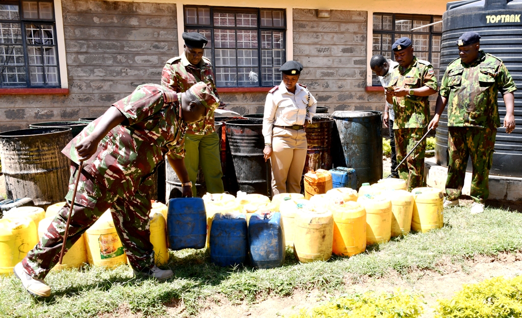 Police officers in Lugari, Kakamega County, have destroyed over 2,700 litres of kangara and seized 550 litres of chang’aa in Marakusi location during a crackdown operation targeting the production and sale of illicit brews in the sub-county.