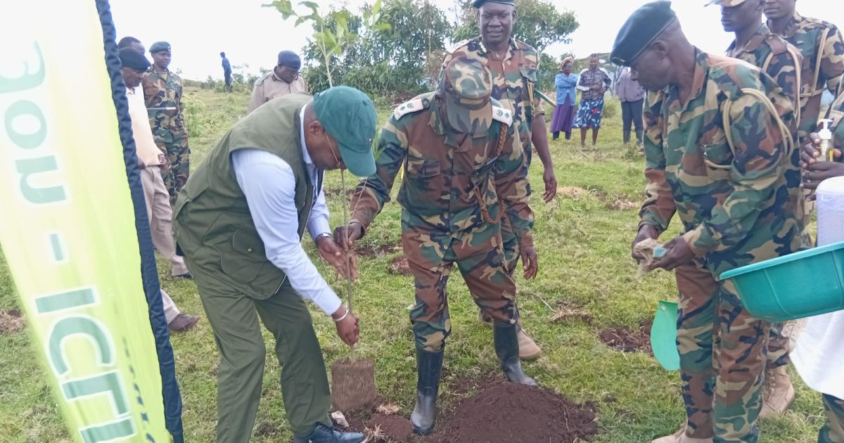 The PS was speaking at Kaberua Forest Station today, where he led the area residents to plant 5,000 tree seedlings as part of activities aimed at restoring the ecosystem of Mt. Elgon.
