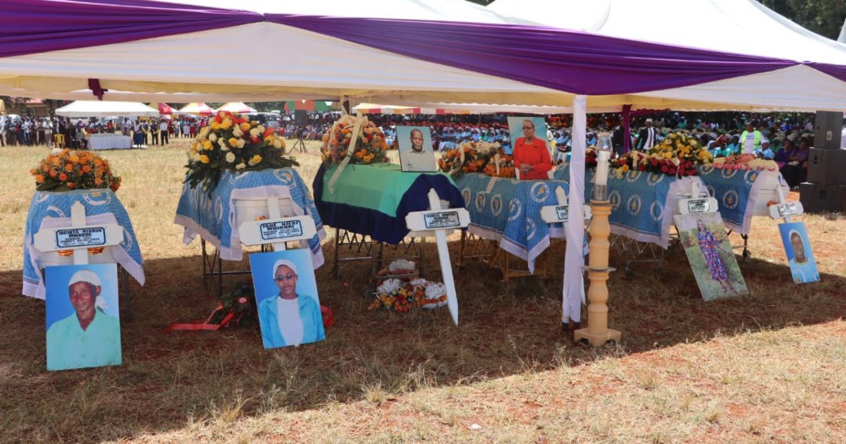 The families of the six, who spoke during the joint requiem mass at Gaitega Primary School Grounds, eulogized them as devoted Christians who were committed to serving in the church and in various capacities in the community. The Mass was led by Archbishop Antony Muheria of the Nyeri Archdiocese and Bishop Joseph Mwongela of Kitui Diocese.