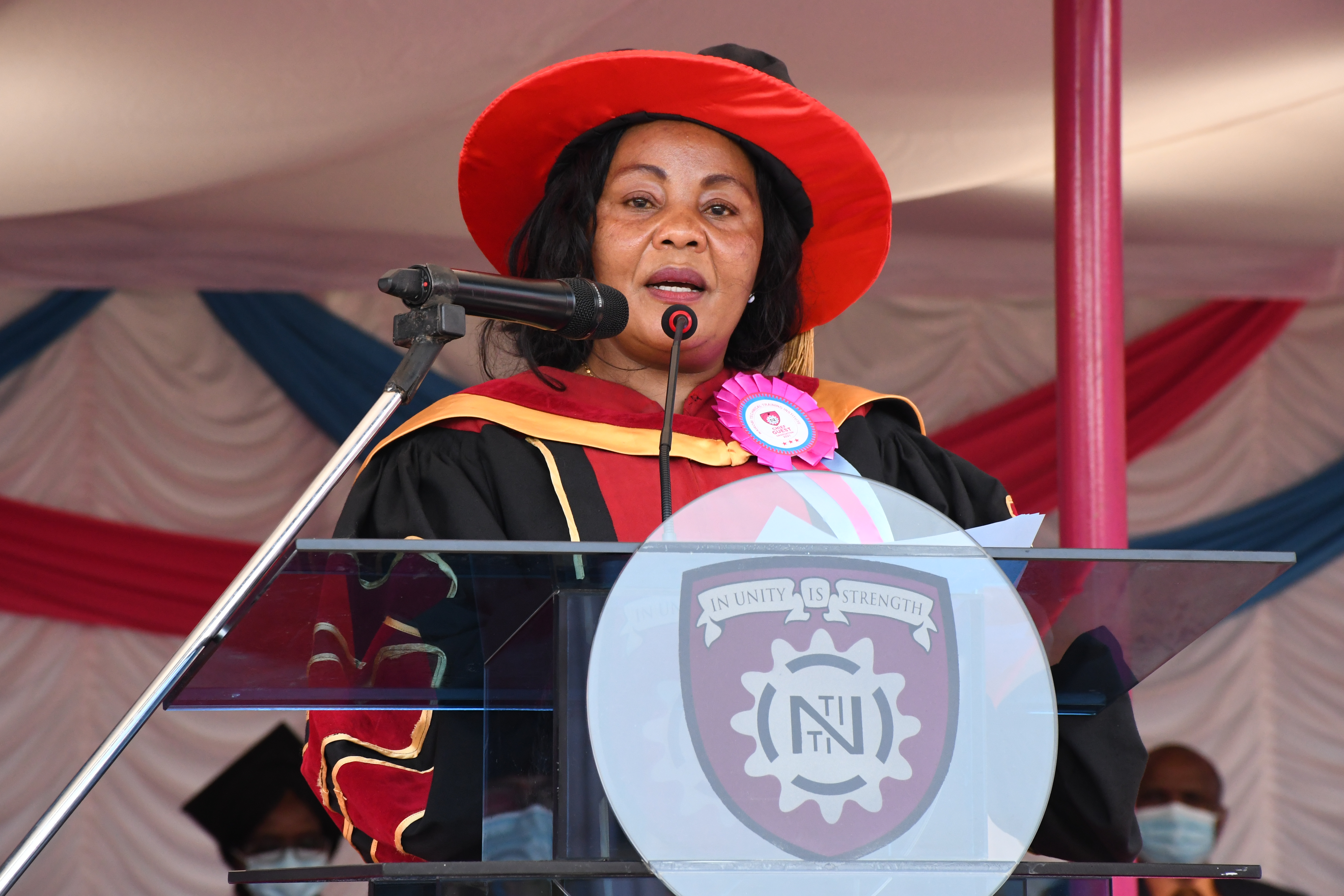 Dr. Margaret Mwakima Principal Secretary State Department of Vocational and Technical Training (TVET), gives her keynote speech today at the Nairobi Technical Training Institute where she was the Chief Guest during