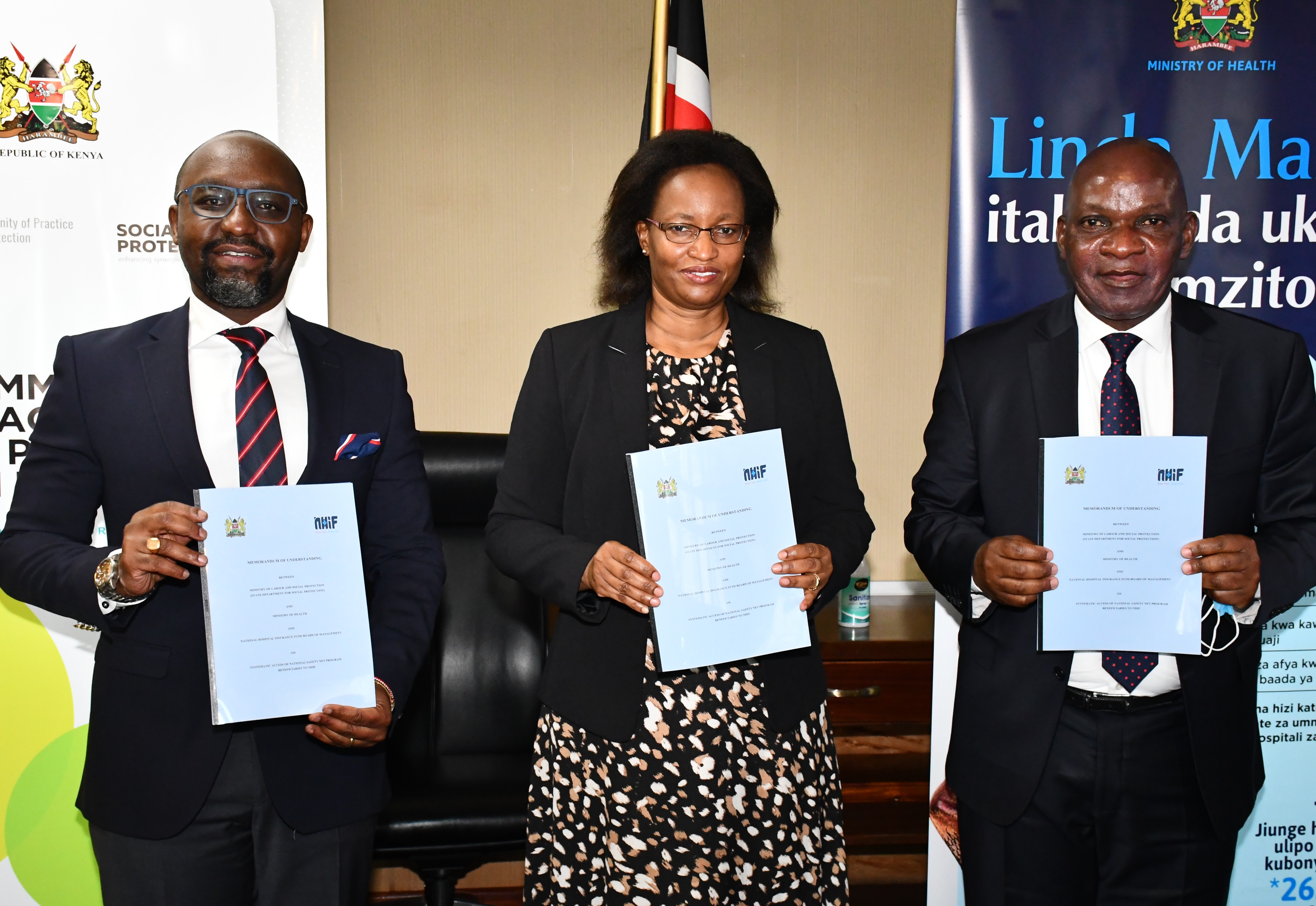 The Government is working towards having a sustainable National Insurance Scheme that aims to progressively provide health-care to all Kenyans. This will be done through a sustainable out-put based financing insurance