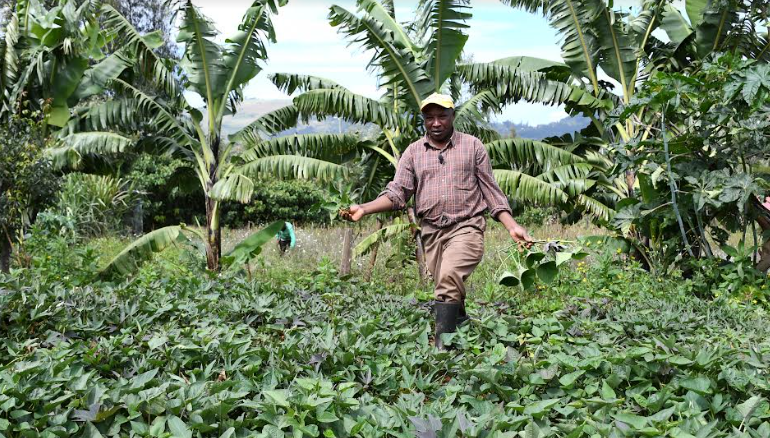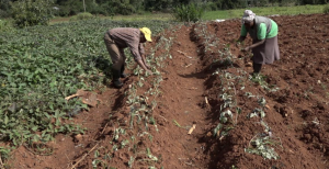 Gitau often works side by side with his wife, Wangui, on their farm in the Milimani area. They have recently been transplanting sweet potato twigs.
