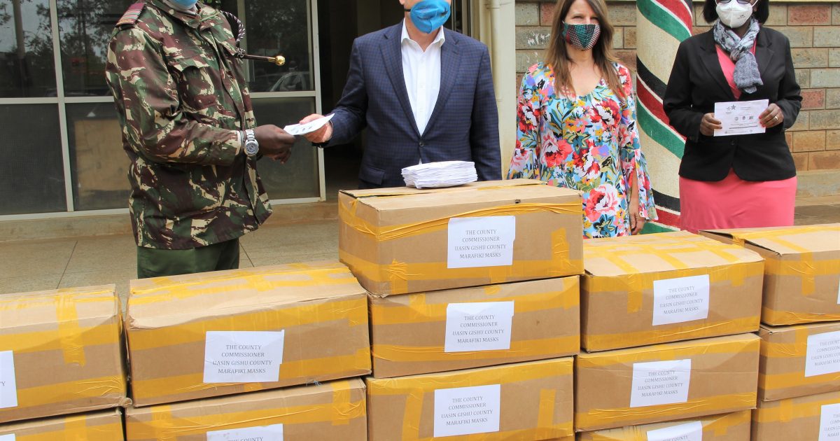 The United States Embassy has donated 153000 reusable facemasks to Uasin Gishu County to support the fight against spiking cases of Covid-19.