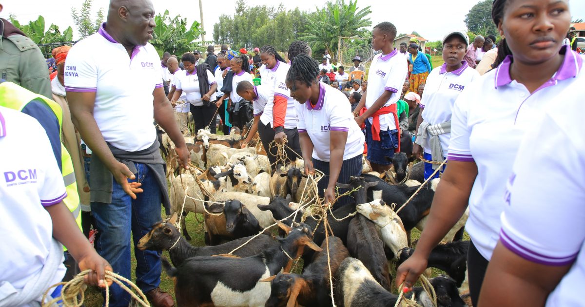 Over three thousand women were assembled at Taracha grounds in the ward where they were issued with water tanks, cheques, milk goats, hash avocado seedlings and shoes, as individuals or groups.